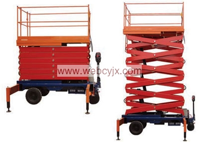 剪叉式高空作业平台说明: 剪叉式高空作业平台是用途广泛的高空作业专用设备。它是依靠外动力牵引,剪叉式机械结构,使升降台起升后有较高的稳定性,宽大的作业平台和较高的承载能力,使高空作业效率更高,更安全。 适用于厂房,工地,宾馆,仓库,机场,车站,码头,体育场等高大建筑之高空设备安装,检修和清洁卫生,野外电力设施高架管道,起吊机械维护保养等,是保障作业安全,提高工作效率之理想设备,令高空作业更加方便,快捷。